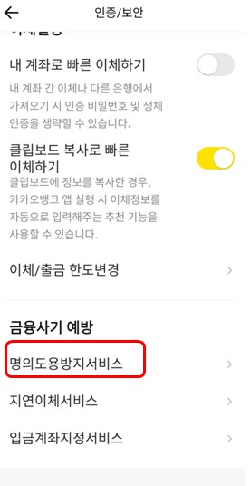명의도용 방지 신청 - 카카오뱅크 무료 신청 순서