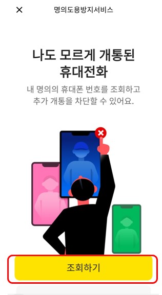 지금 바로 명의가 도용하여 핸드폰을 개통하지 못하도록 카카오뱅크 명의도용방지 무료 서비스를 소개합니다.