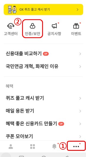 ▶ 이후, 화면 상단에 있는 '은증/보안' 을 선택해 주세요.