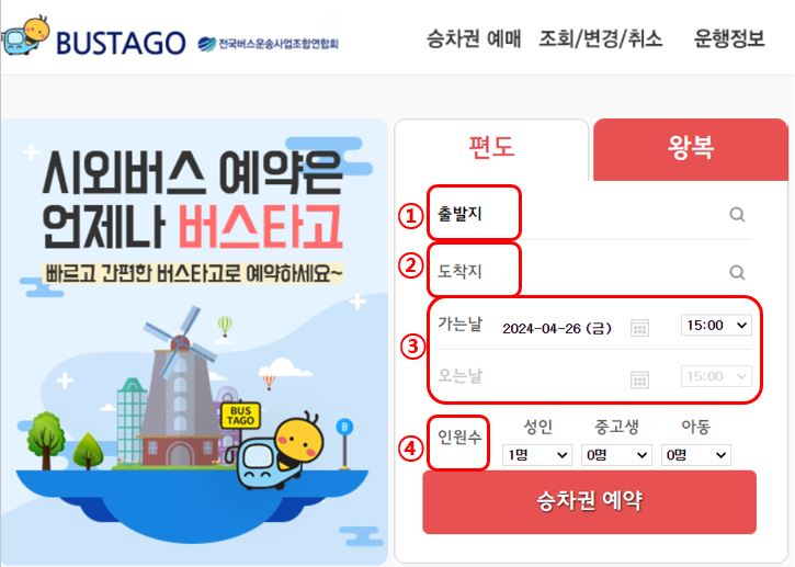 버스타고 예매 방법은 PC나 스마트폰 앱을 통해 미리 원하는 일정으로 편리하게 예약 및 취소. 변경을 할 수 있습니다.