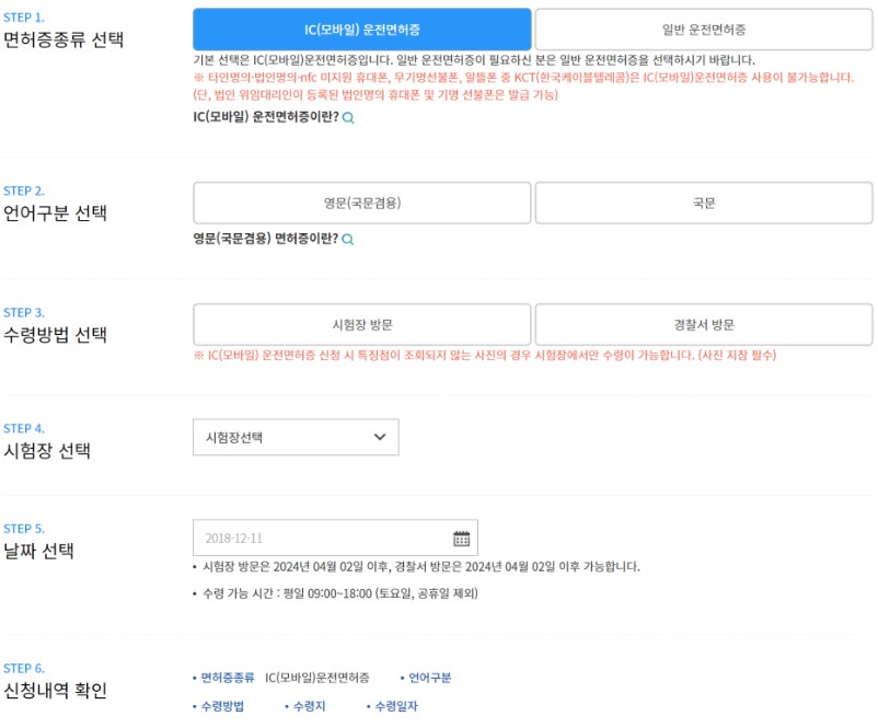 | 경찰서 방문 | 운전면허 시험장 방문 | 인터넷 신청 | |||