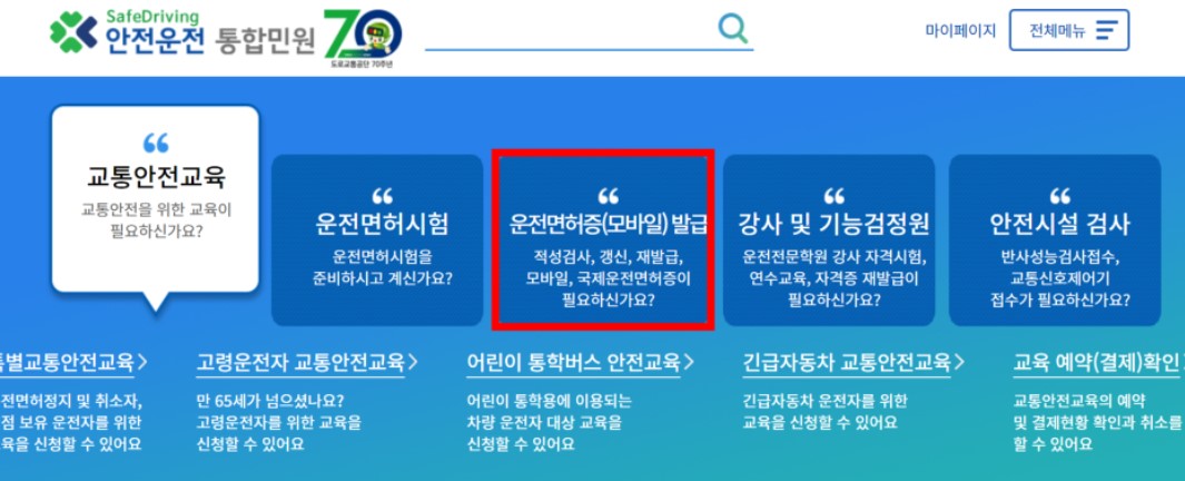 안전운전통합민원 홈페이지는 운전면허를 취득하려는 분들이라면 한 번쯤 이용해 보셨을 텐데요. 안전운전 통합민원 홈페이지에서는 운전면허증 발급뿐 아니라 교통안전과 관련된 교육, 면허
