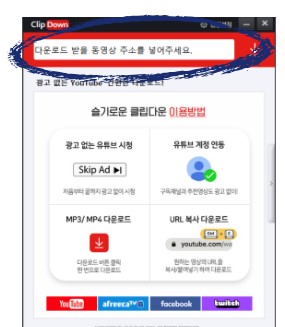 클립다운은 유튜브 영상을 mp3로 변환해 주는 프로그램으로 무료입니다.