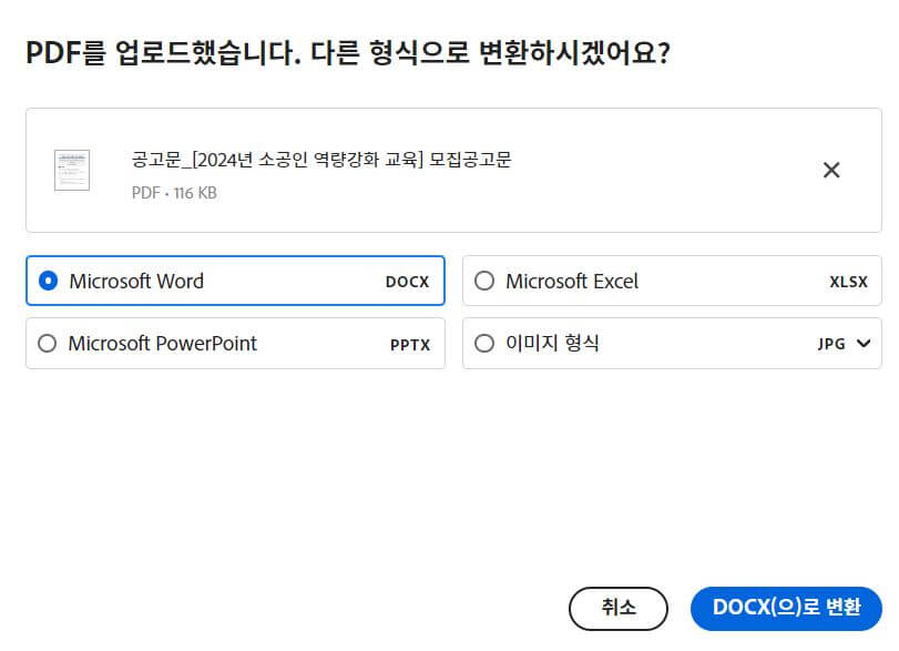 2. Adobe Acrobat - pdf파일을 한글파일로 변환하는 방법