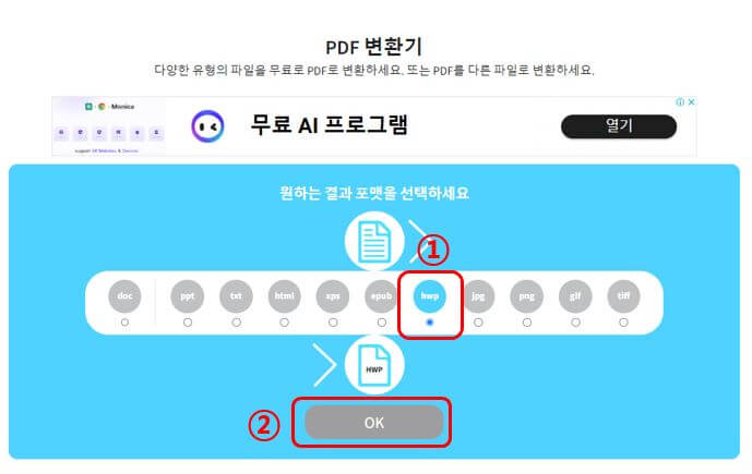 2. all in pdf 사이트 - pdf파일을 한글파일로 변환하는 방법