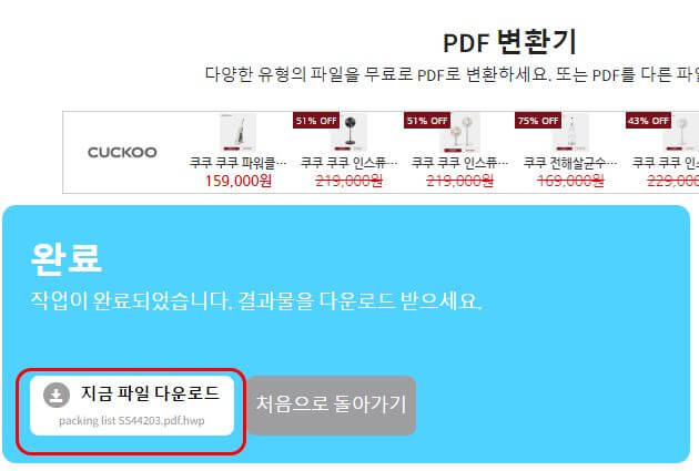(5) 잠시 기다리면, 파일이 변환되니 변환된 파일을 저장합니다.